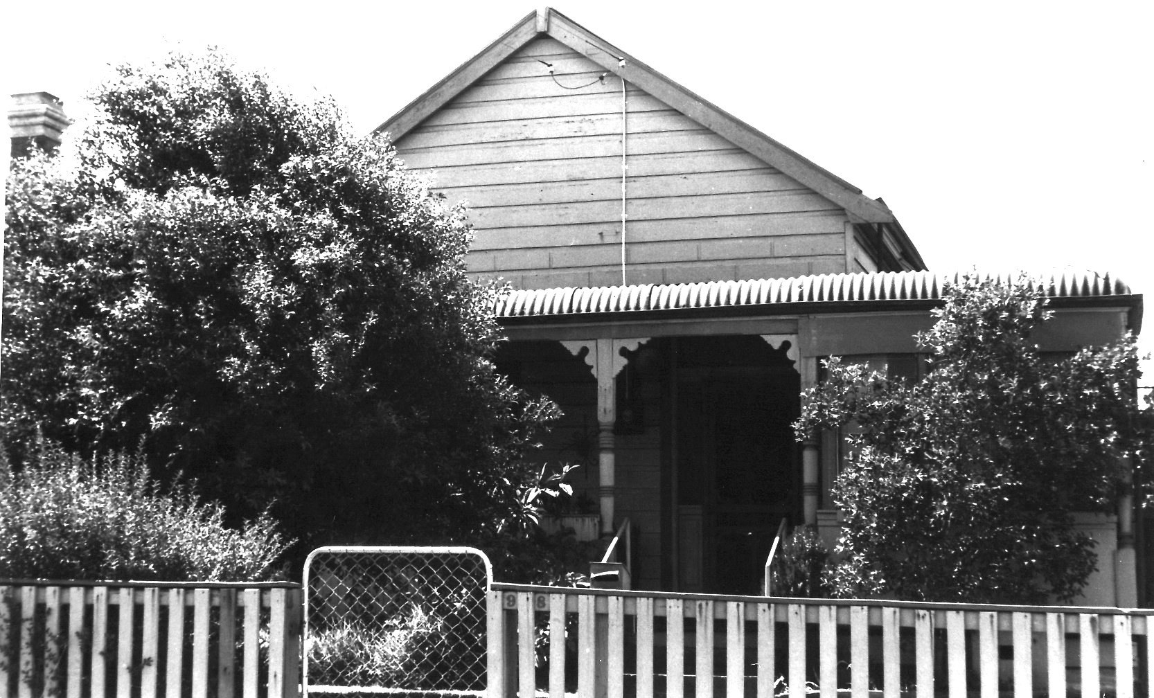 Our house, at 98, was wooden, and had a 33 foot (10 m.) frontage, and I think may have been one of the first houses in the street. I'm guessing this photo was taken in the late 1950s, maybe even by me. Showing the number like that (hidden next to the gate, between the pickets) looks like the kind of thing I would do.