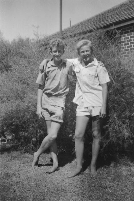 The next house was inhabited by possibly another single mother, tho I remember nothing at all about the adults there. Graeme Brierley is one name I remember. He was a couple of years older than me, so born about 1941; and there was another boy who lived there, who may have been called Graham Bell, and was about the same age as Brierley [who's on the right in the photo > ]. So maybe two single mothers. I don't remember any adults. That house had a central hall. The verandah was unattractively enclosed with cement bricks. There was a (no longer usable) windmill in the back yard, and sheds (with pigeons in one), and a garage at the (western) side at the end of a long non-paved driveway, which I remember as overgrown with buffalo grass (both driveway and garage - which never had any kind of vehicle in it that I can remember - just spiders). There was a shade-house (for ferns or whatever) on the SW corner of the house.