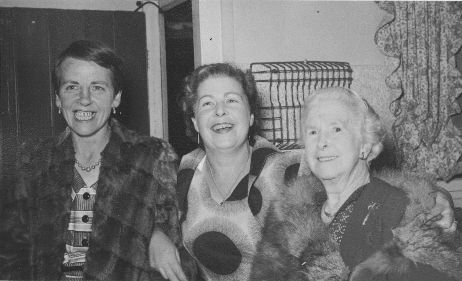 Then the house where Mary Boundy [on the left of the photo, with my mother and grandmother >] lived. I think it was double-fronted (a room on each side of a hall) and I know it had a large wooden-floored return verandah on front (eastern) and southern sides. And also a large pomegranate tree on the southern fence. There was a side gate and a path which led past said tree.
