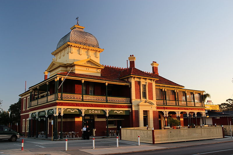 The SW corner, now a cafe, used to be the public bar. No women in there, except behind the bar. I don't think I ever had a drink in there. I'd left home to go to work in Narrogin when I had just turned 20, and the legal age then was 21.