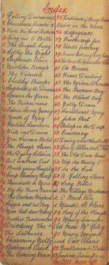 New: 7 August 1998 | Now: 3 June 2002 | The background to this page is an enlargement from the Index to Jim Copper's pre-War song book written in an account book. | Garry Gillard