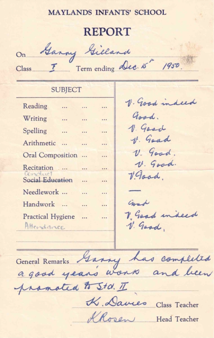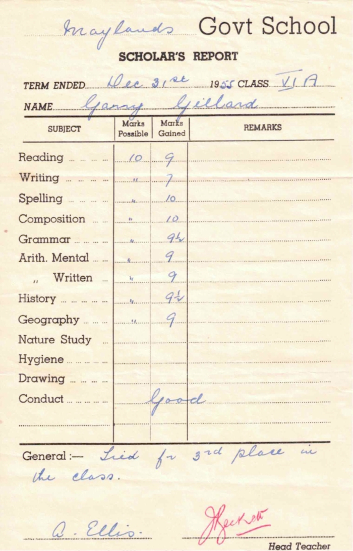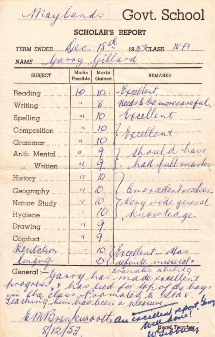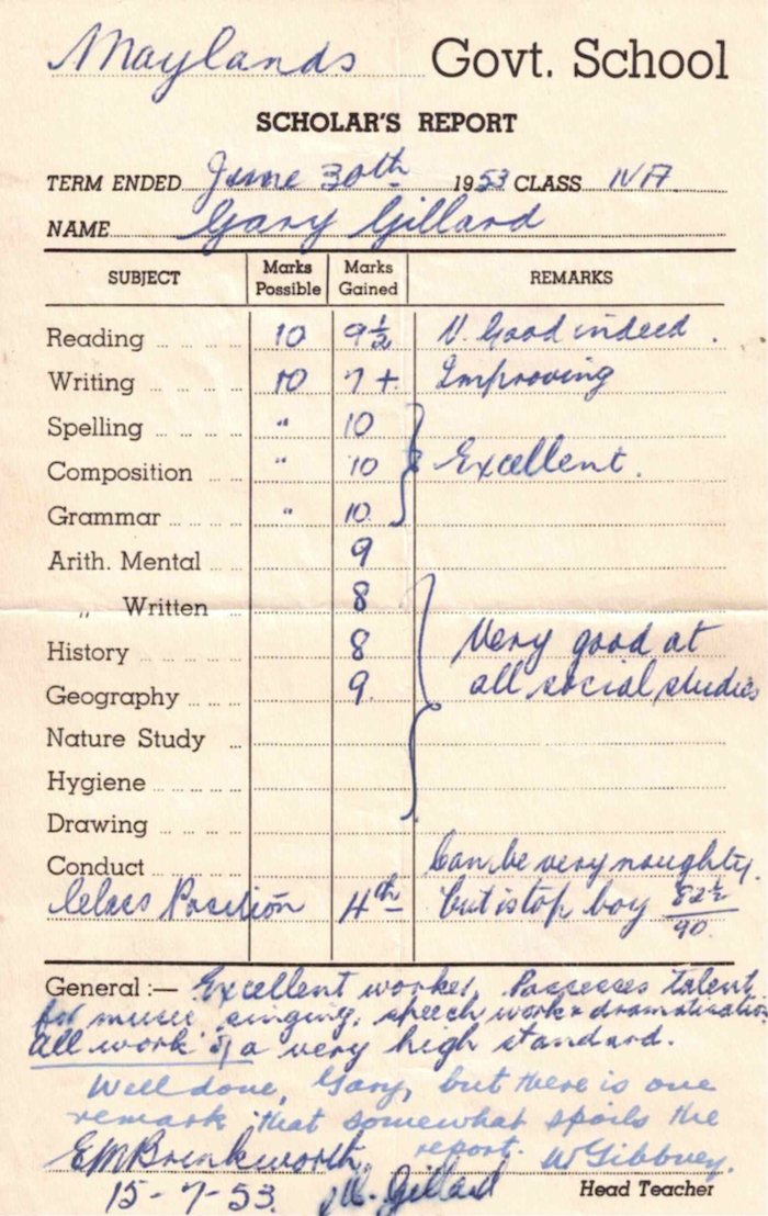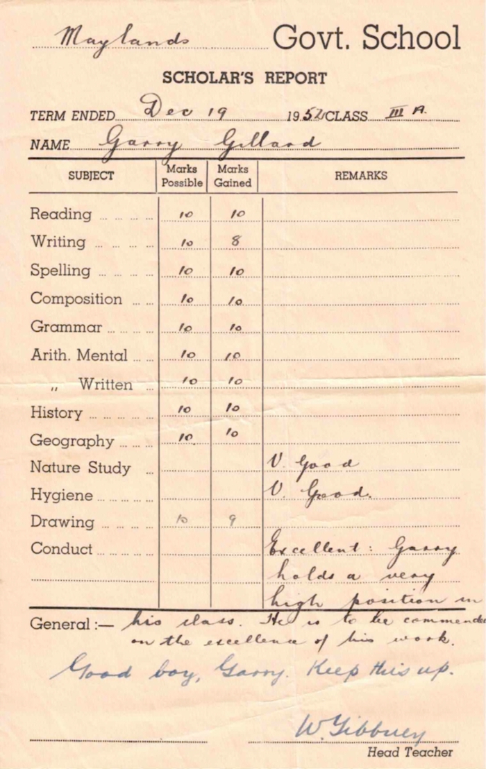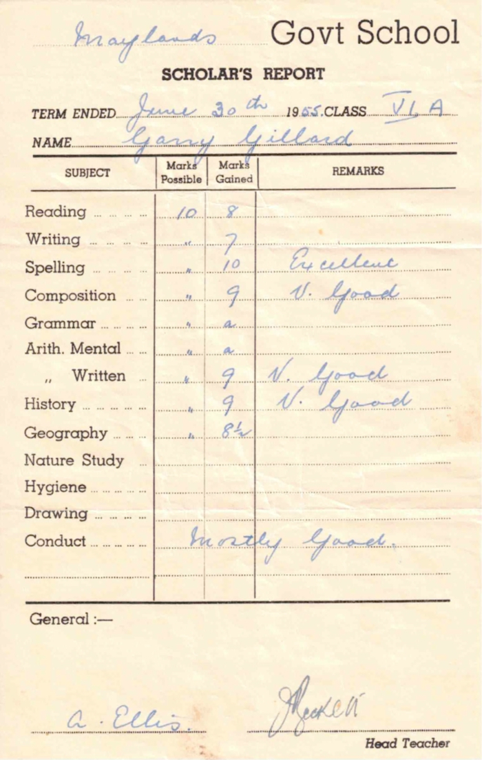 Garry Gillard > souvenirs > Maylands Primary School > my reports