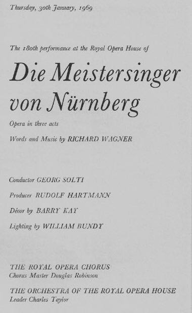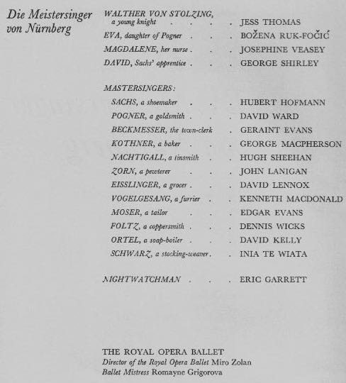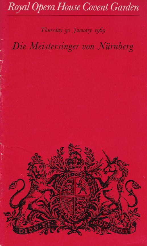 We had very good seats in the orchestra stalls, courtesy of my friend and colleague at Northampton GS, Jimmy Young. What I remember best is the scenery for the second act, which represented a street in mediaeval Nuremberg, and received a well-deserved round of applause when the curtain went up.
