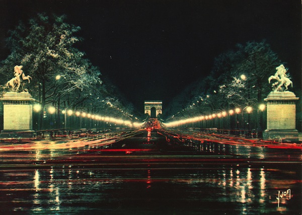 L'Avenue des Champs-Elysées et l'Arc de Triomphe vus de nuit