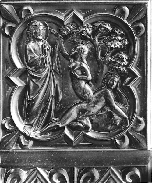 [God creates the first woman from the rib of the first man.]