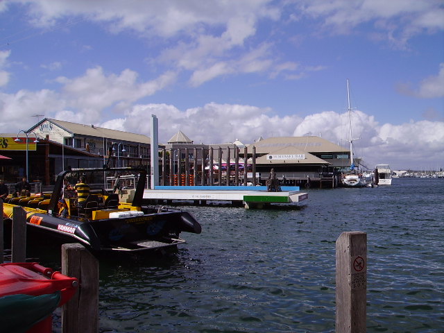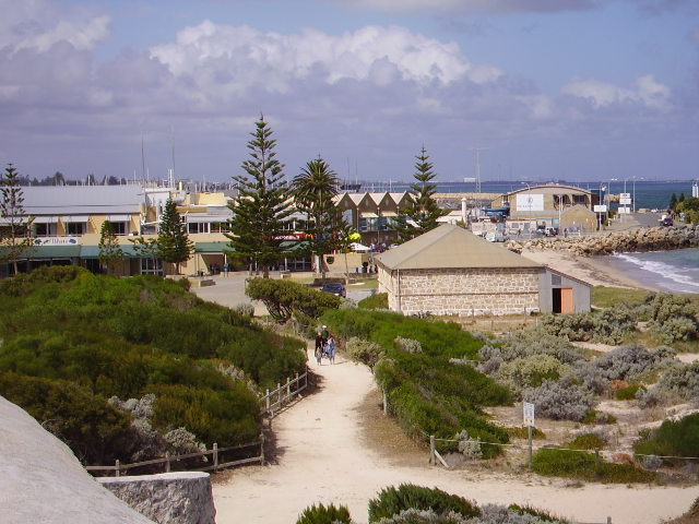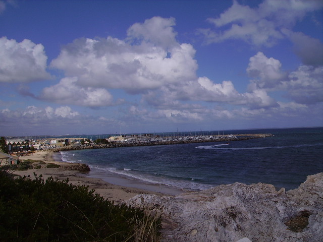 Bit to the right: the harbour with Rottnest dimly in the distance.