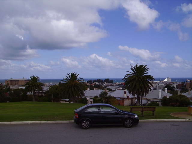 Looking east from the Fremantle War Memorial you can't see my roof, but that flat orange one is just over the road.