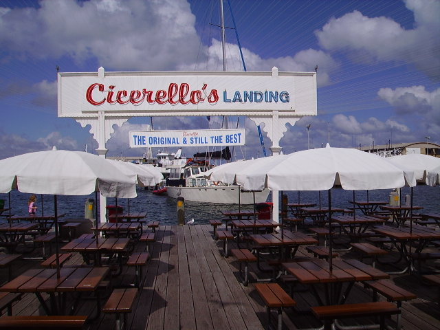 Boring photo of some cars - and the facade of Cicerello's.