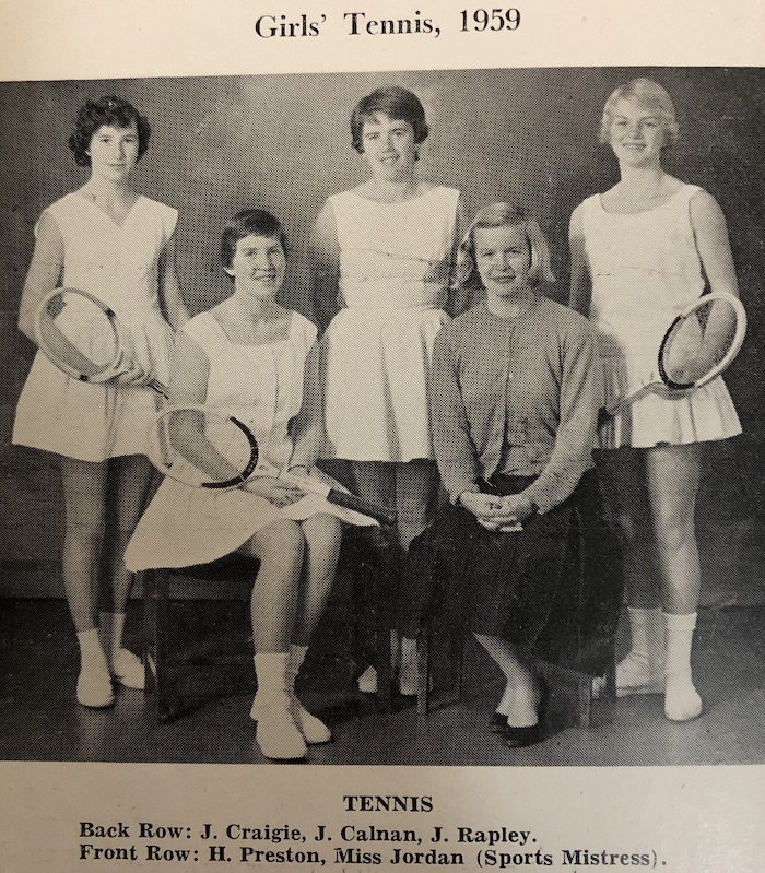 Joan was in the school tennis team in both fourth and fifth years, and was the captain of the latter.